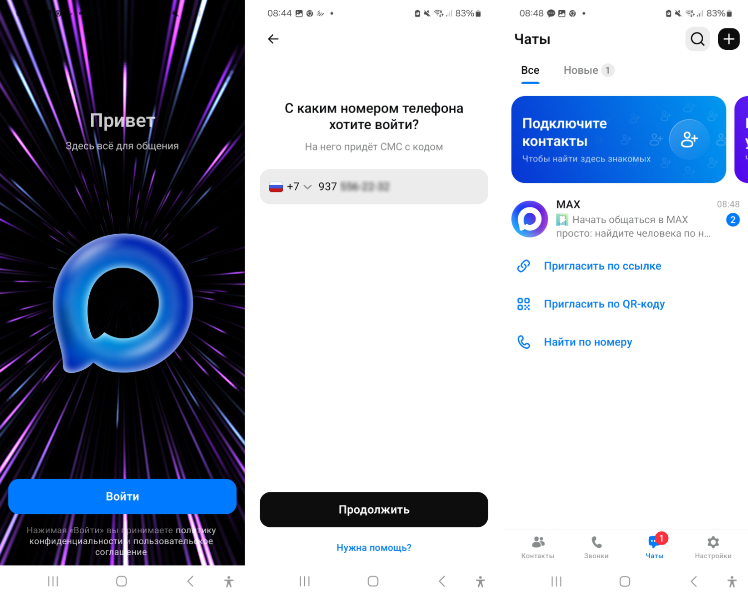 Пользователь может входить в Max одновременно с нескольких устройств, используя один номер мобильного телефона. Все чаты и звонки будут синхронизироваться между устройствами.