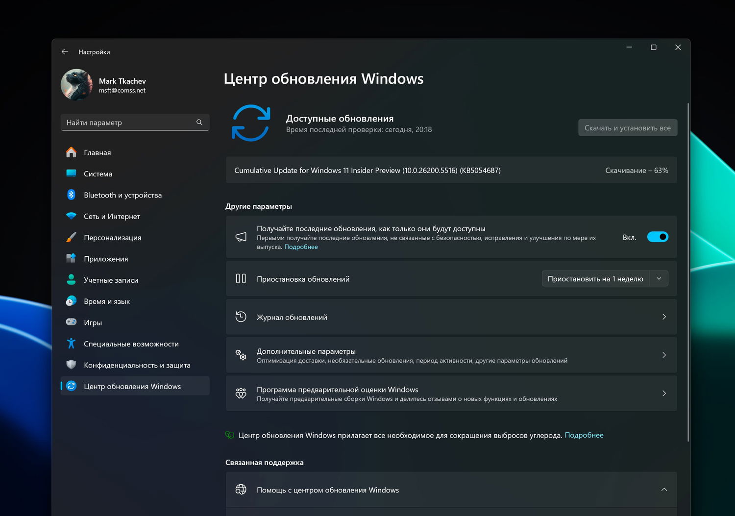 Примечание. Microsoft заблокировала установку обновлений для инсайдеров Windows 11 в России и Беларуси. Для установки обновления KB5054687 (Build 26200.5516) вы можете использовать наши DNS-серверы: Установка инсайдерских сборок Windows 11 с помощью Comss.one DNS.