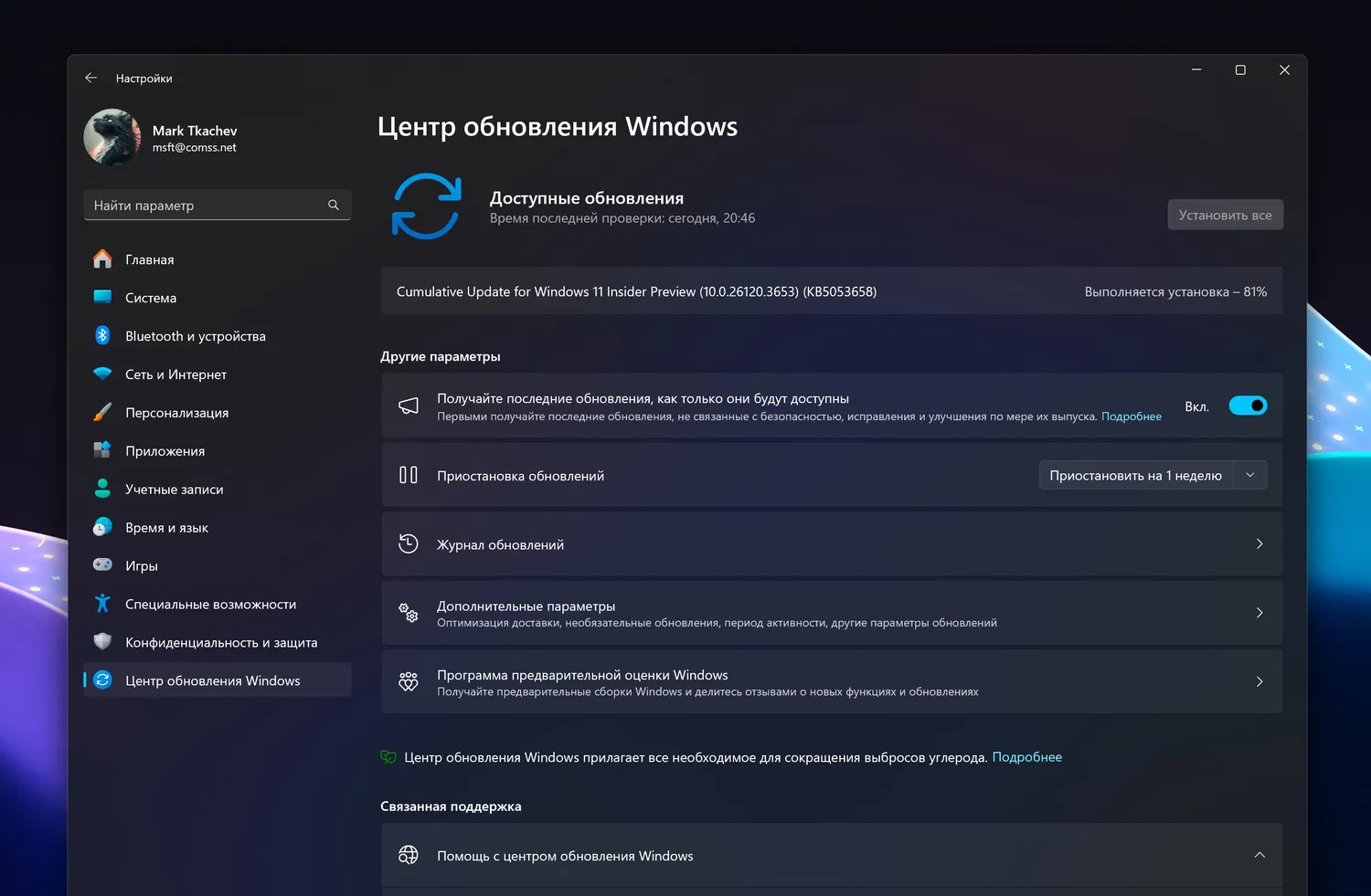 Примечание. Microsoft заблокировала установку обновлений для инсайдеров Windows 11 в России и Беларуси. Для установки обновления KB5053658 (Build 26120.3653) вы можете использовать наши DNS-серверы: Установка инсайдерских сборок Windows 11 с помощью Comss.one DNS.