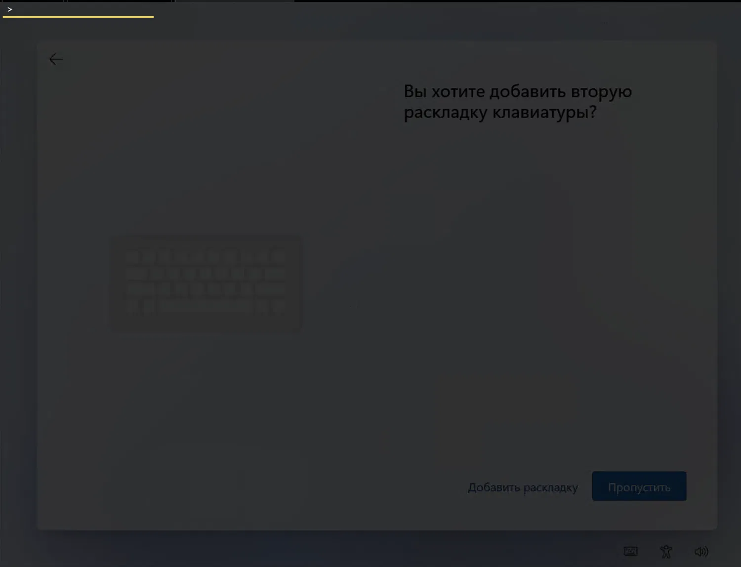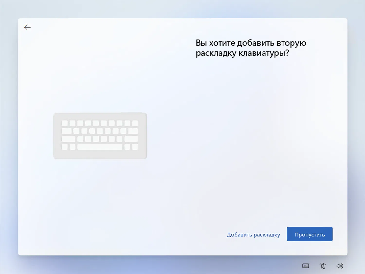 2. Остановитесь на экране выбора дополнительной раскладки клавиатуры