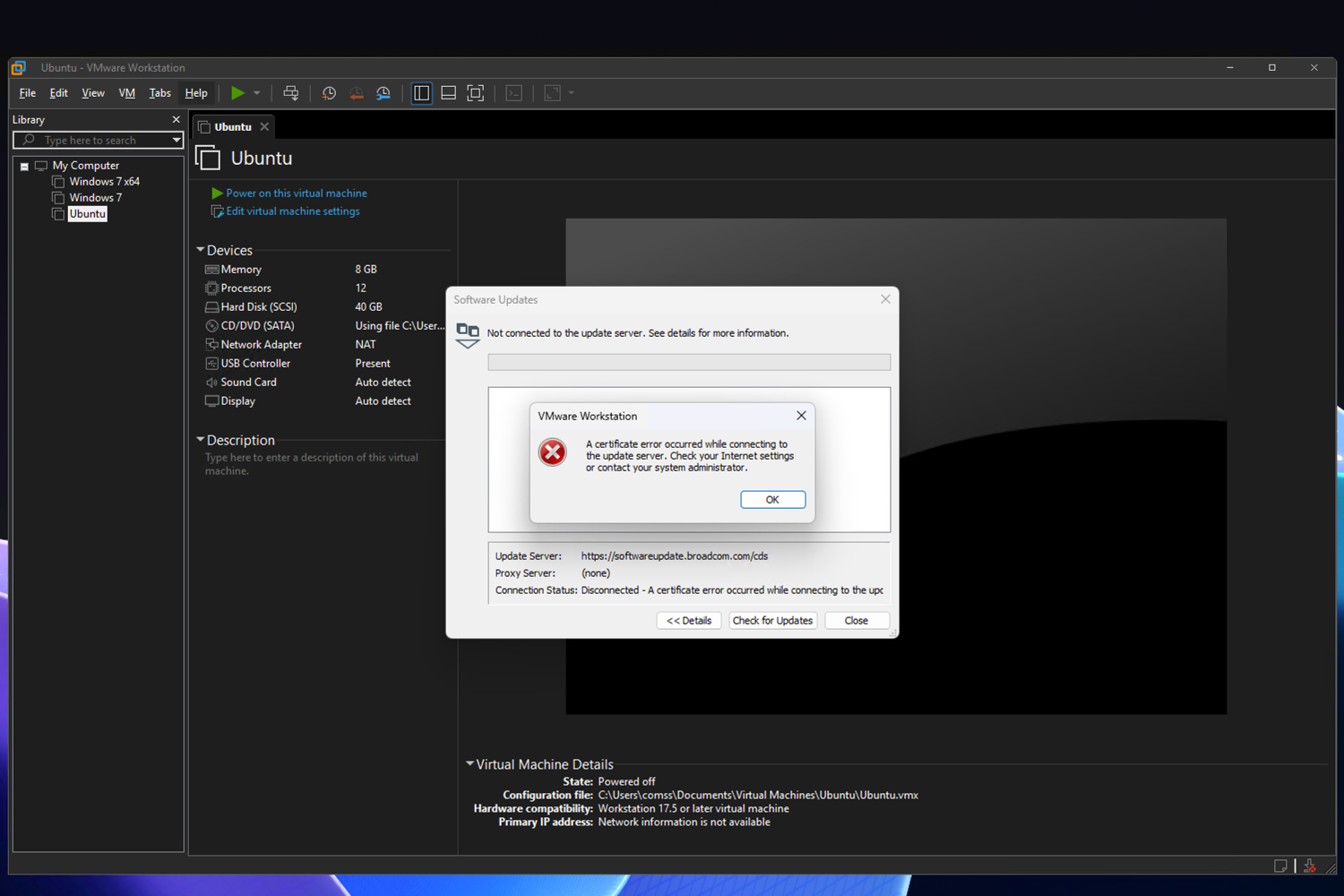 Пользователи VMware Workstation сообщают, что функция автоматического обновления программы перестала работать после того, как компания Broadcom перенаправила URL загрузки на общую страницу поддержки, что привело к ошибкам проверки сертификатов.