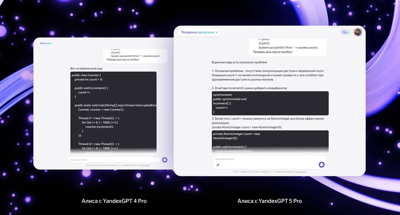 Ответы на запросы пользователей формируются с использованием самой новой версии большой языковой модели «Яндекса» — YandexGPT 5 Pro. Эта модель, представленная в феврале 2025 года, демонстрирует результаты, сопоставимые с мировыми нейросетями по ключевым бенчмаркам. Она значительно улучшила навыки генерации кода, решения логических задач и ведения диалогов на русском и английском языках.