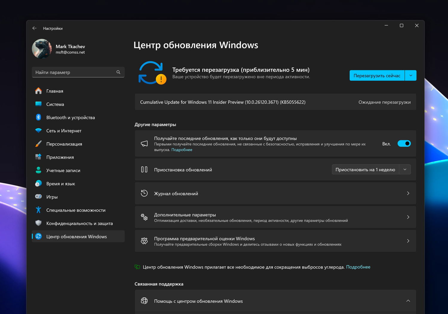 Примечание. Microsoft заблокировала установку обновлений для инсайдеров Windows 11 в России и Беларуси. Для установки обновления KB5055622 (Build 26120.3671) вы можете использовать наши DNS-серверы: Установка инсайдерских сборок Windows 11 с помощью Comss.one DNS.