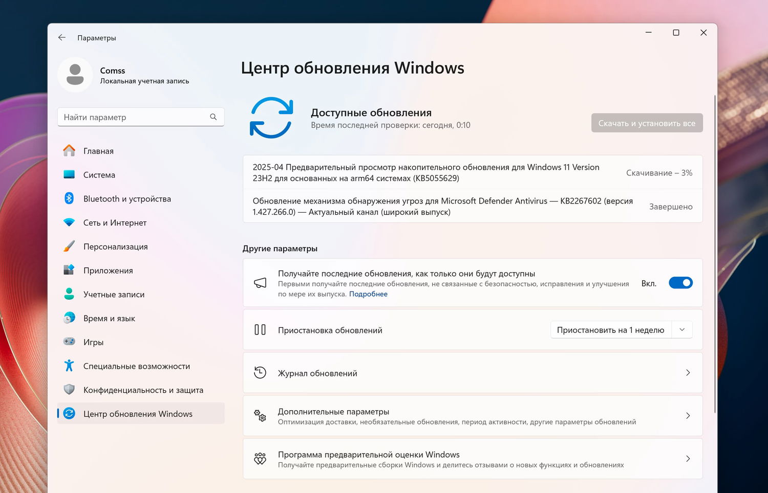 Примечание. Чтобы предварительные обновления устанавливались автоматически, включите опцию Получайте последние обновления, как только они будут доступны в меню Параметры > Центр обновления Windows.