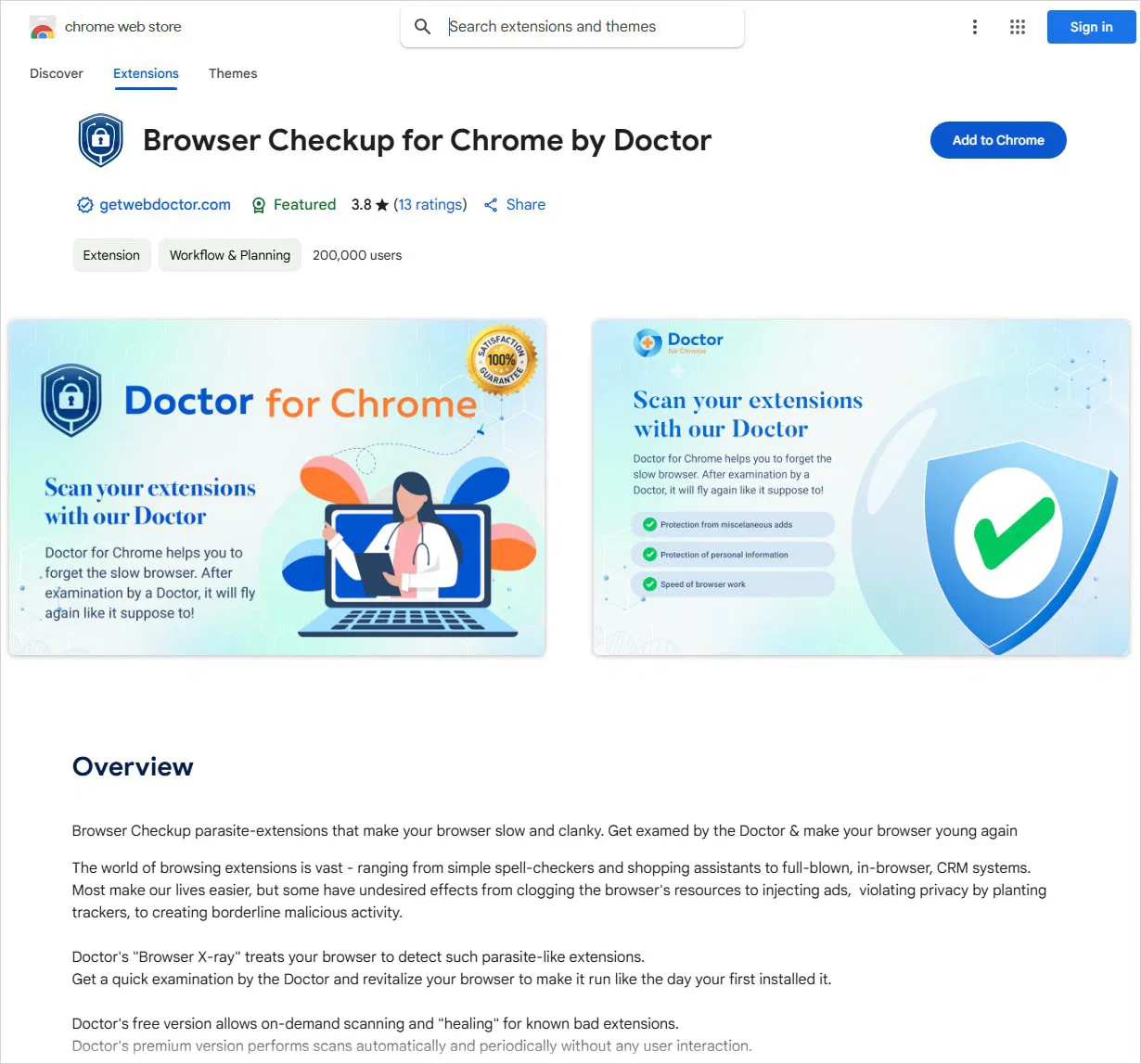 - Browser Checkup for Chrome by Doctor — 200,000 пользователей (публичное)