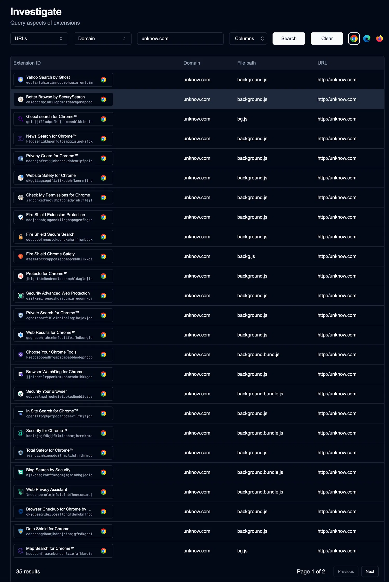 Через домен unknow.com, указанный в коде расширения, исследователь обнаружил еще несколько расширений, также использующих этот домен. Все они якобы предоставляют функции блокировки рекламы и защиты приватности.