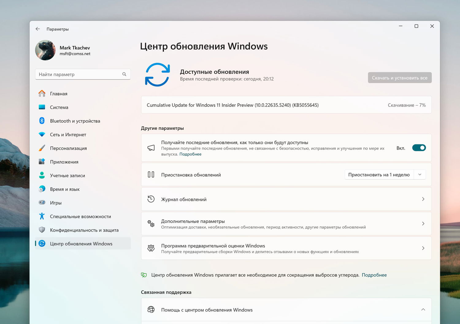 Примечание. Microsoft заблокировала установку обновлений для инсайдеров Windows 11 в России и Беларуси. Для установки Windows 11, Версия 23H2 (Сборка ОС 22635.5240) вы можете использовать наши DNS-серверы: Установка инсайдерских сборок Windows 11 с помощью Comss.one DNS.