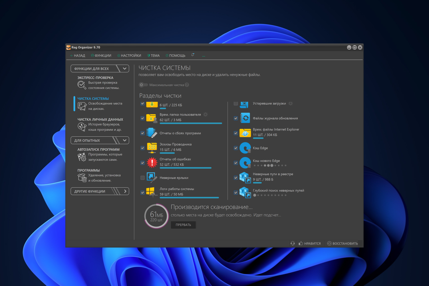 Reg Organizer — это многофункциональная утилита для обслуживания, оптимизации и тонкой настройки Windows. Программа позволяет управлять автозапуском, удалять ненужные приложения и их следы, чистить и редактировать реестр, а также проводить глубокий анализ состояния системы. Благодаря широкому набору инструментов и удобному интерфейсу, Reg Organizer подойдёт как опытным пользователям, так и тем, кто просто хочет повысить производительность компьютера.