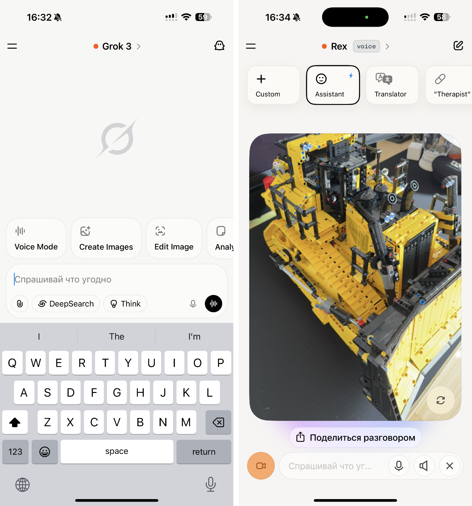 Для этого в приложении достаточно нажать на чёрный значок справа от поля ввода, чтобы перейти в режиме голосового ассистента "Assistant". Если включить камеру и навести на предмет — Grok сразу комментирует, что перед ним. Пока функция работает в режиме предварительного тестирования и активно дорабатывается, но уже сейчас доступна всем пользователям, в том числе без подписки.