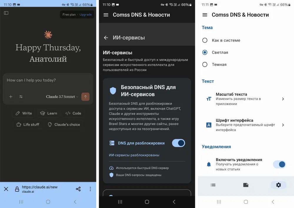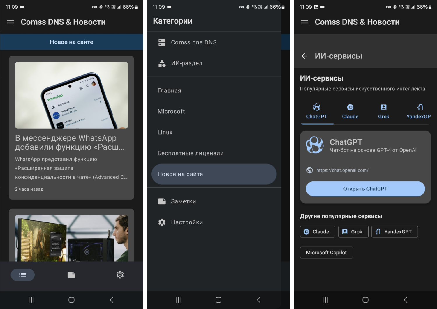Comss DNS & Новости— это мобильное приложение для Android, которое объединяет актуальные новости, персонализированные уведомления и подписку на выделенный сервер Comss.one DNS. DNS предлагает удобный доступ к ИИ-разделам, мобильным играм и полезным сервисам.
