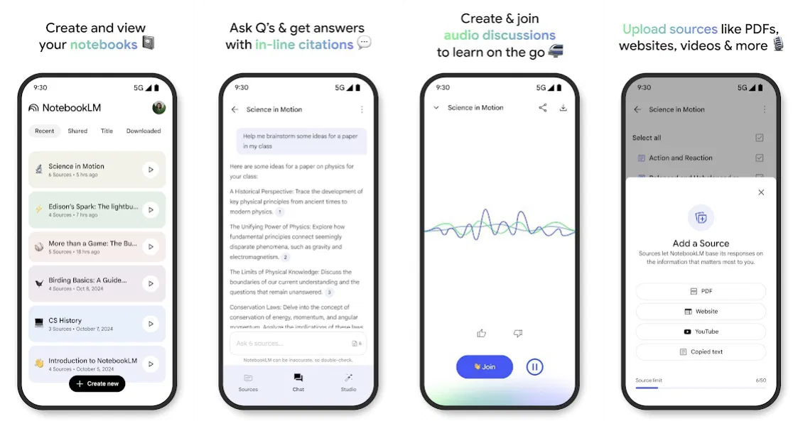 Приложение позволит легко создавать и открывать заметки, задавать вопросы в любое время и даже прослушивать аудиообзоры в формате подкастов с поддержкой фонового воспроизведения и возможностью скачивания контента для использования в офлайн-режиме.