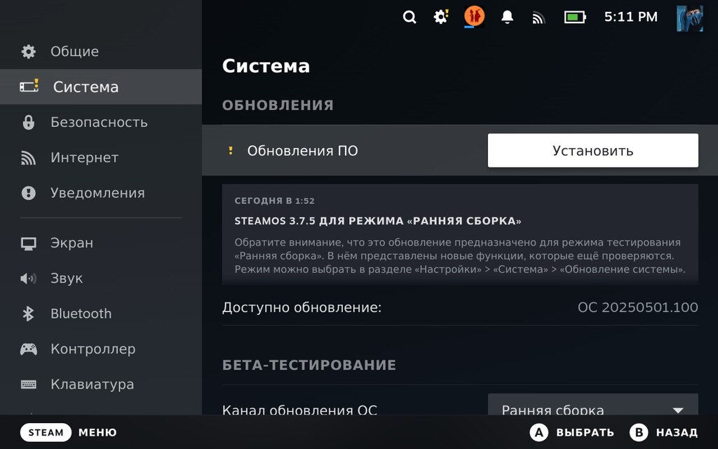 Основные изменения в SteamOS 3.7.5 (Beta)