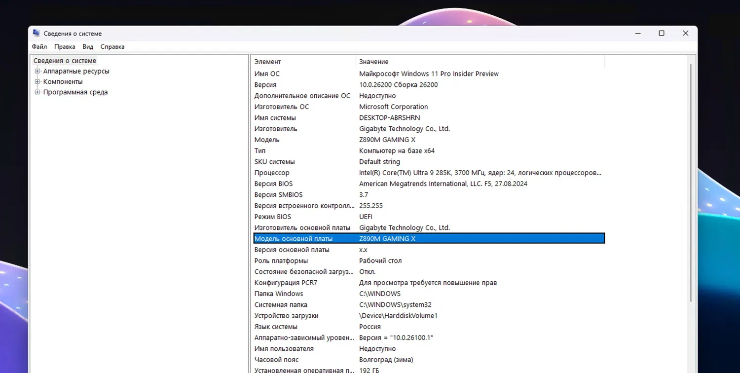 Пользователям, использующим процессоры Intel Core 13-го и 14-го поколения, рекомендуется проверить сайт производителя материнской платы для получения последней версии BIOS с включённым микрокодом 0x12F. Если вы не знаете модель своей платы, запустите утилиту msinfo32 через меню «Пуск» и найдите строку «Модель основной платы».