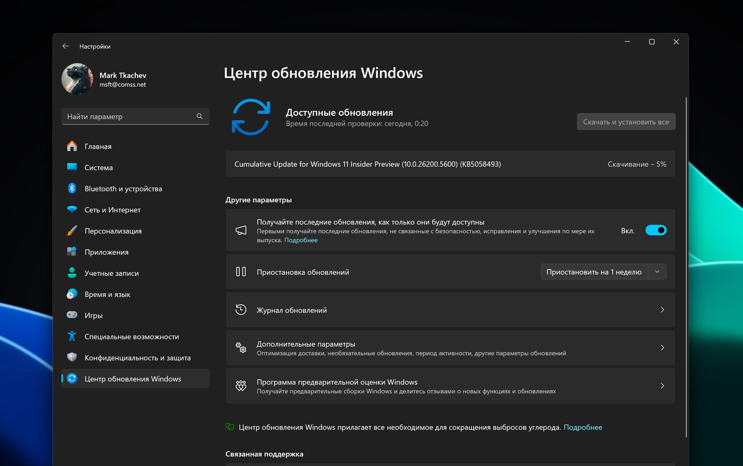 Примечание. Microsoft заблокировала установку обновлений для инсайдеров Windows 11 в России и Беларуси. Для установки обновления KB5058493 (Build 26200.5600) вы можете использовать наши DNS-серверы: Установка инсайдерских сборок Windows 11 с помощью Comss.one DNS.