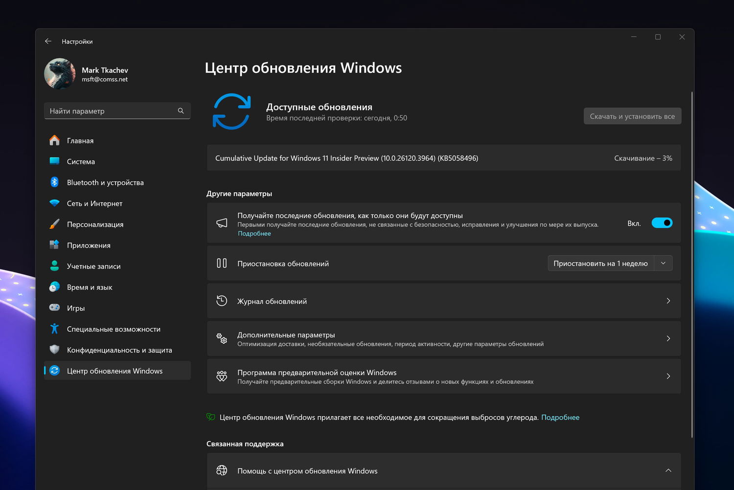 Примечание. Microsoft заблокировала установку обновлений для инсайдеров Windows 11 в России и Беларуси. Для установки обновления KB5058496 (Build 26120.3964) вы можете использовать наши DNS-серверы: Установка инсайдерских сборок Windows 11 с помощью Comss.one DNS.