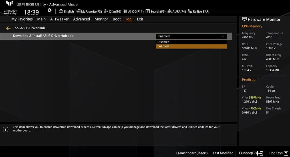 DriverHub — это официальный инструмент ASUS для управления драйверами, который автоматически устанавливается при первом запуске системы с определенными материнскими платами ASUS.