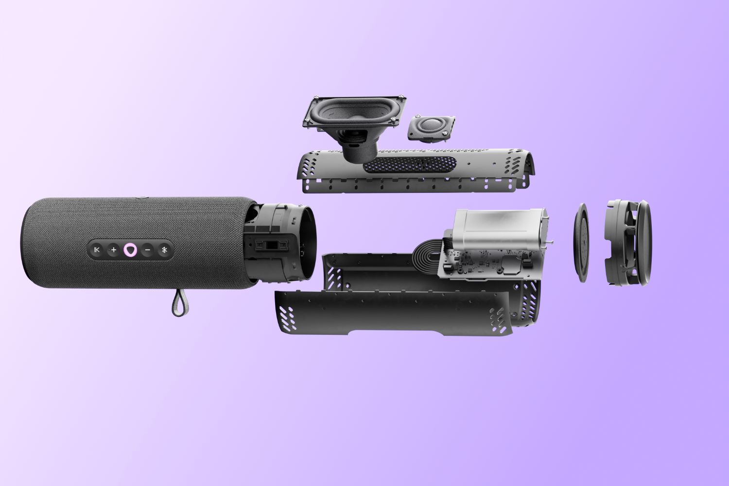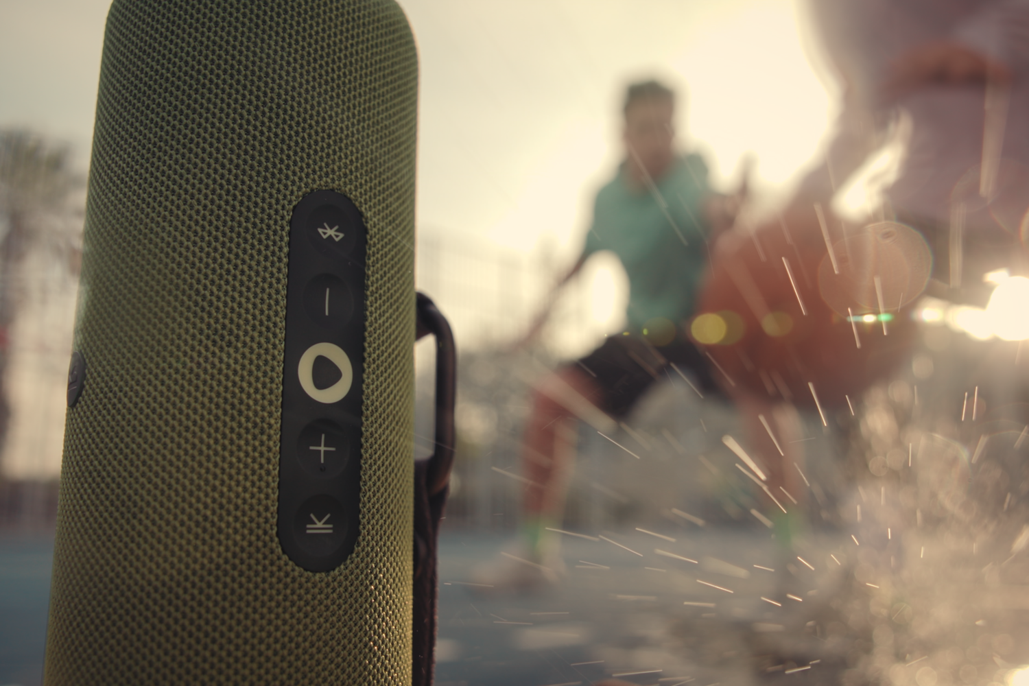 Устройство выполнено в защищённом корпусе (стандарт IP67), устойчивом к попаданию пыли и влаги, выдерживает кратковременное погружение в воду. Для удобства переноски предусмотрен съёмный ремешок, позволяющий повесить колонку на рюкзак или спортивное оборудование.