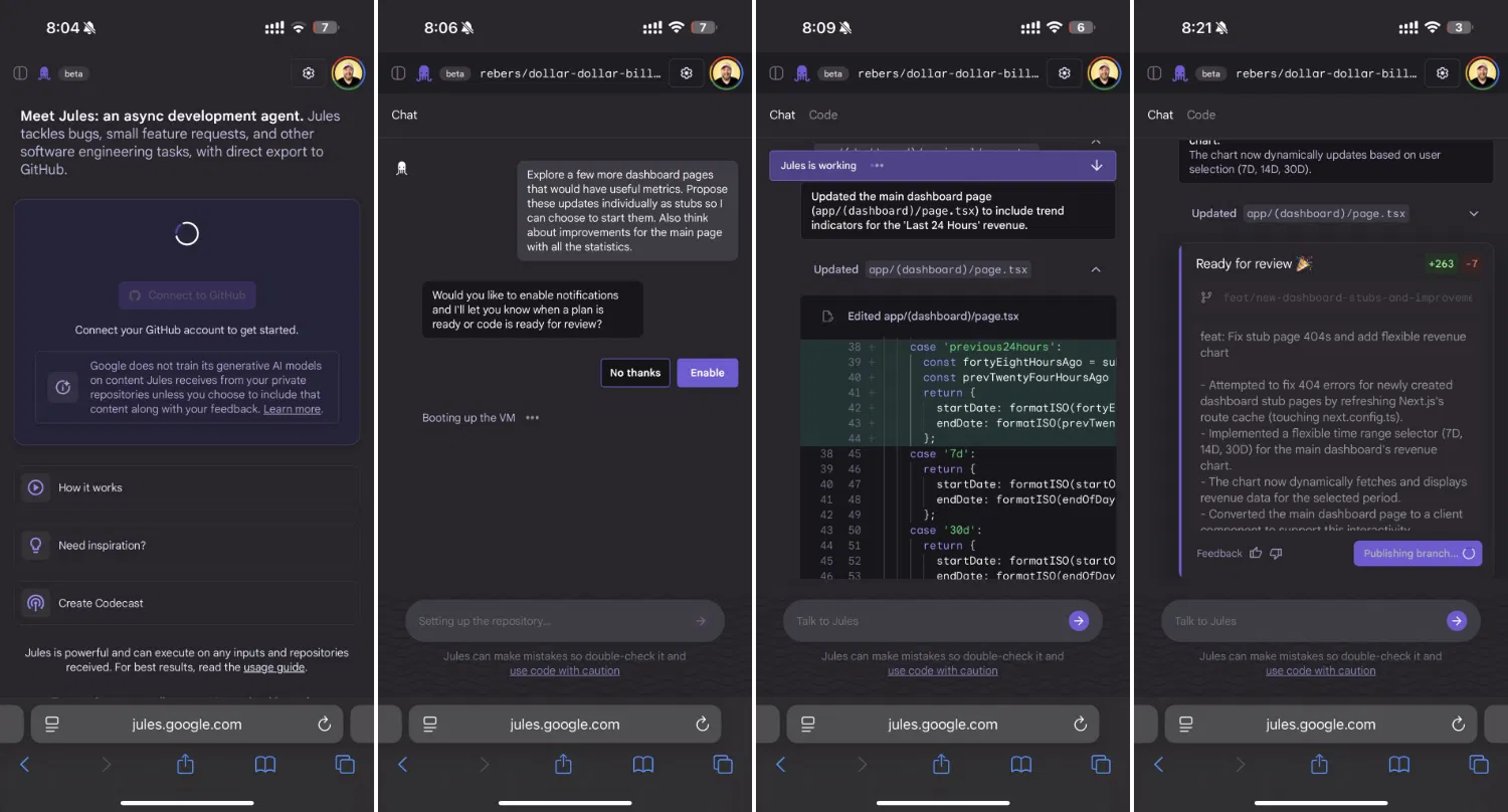 - Jules тестировался с декабря 2024 года в закрытой бета-версии, а теперь доступен публично через сайт jules.google.com.