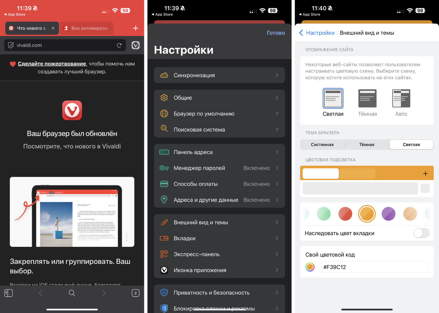 Vivaldi 7.4 для iOS: Что нового