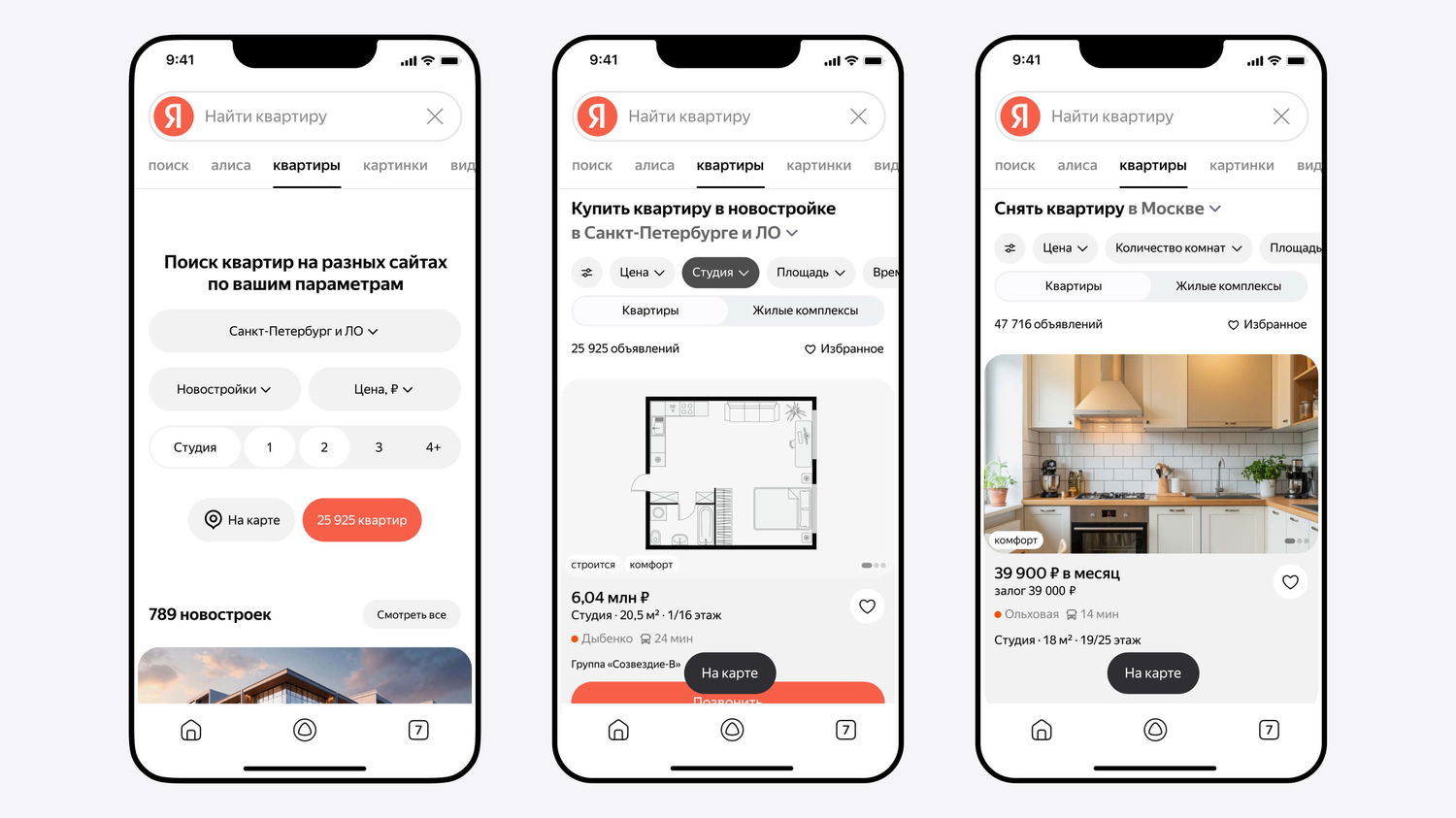 Вертикаль «Квартиры» объединяет предложения недвижимости из разных источников — от застройщиков до площадок-агрегаторов. Объявления с одинаковыми объектами группируются в карточки, чтобы пользователи могли легко найти лучшее предложение.