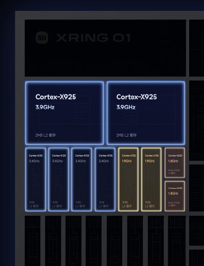 Xring O1 стал первым флагманским процессором компании с 2017 года и построен по передовому 3-нм техпроцессу. В его составе — 10 ядер: