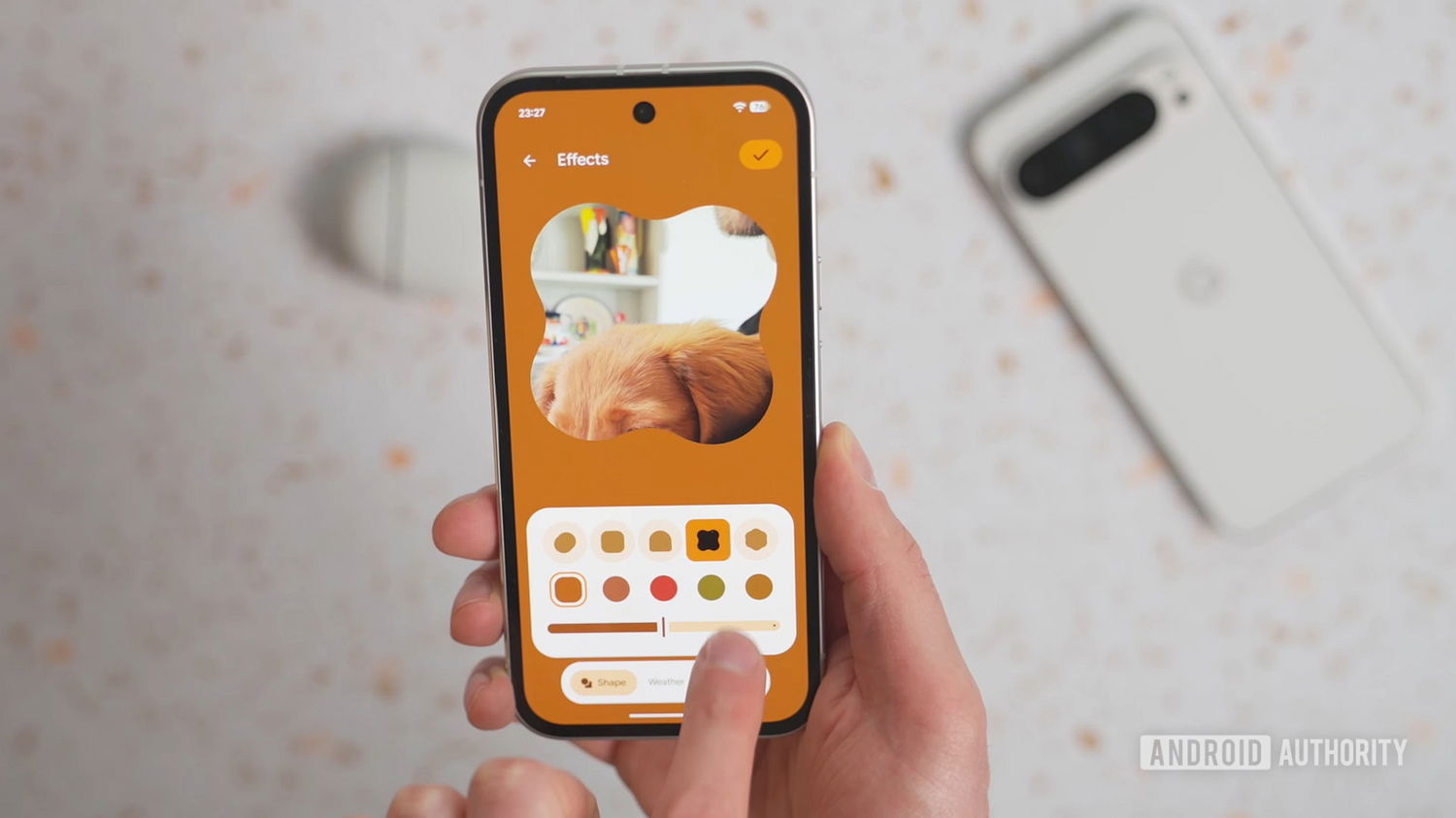 Google добавила возможность отображения погодных эффектов на обоях, таких как туман, дождь, снег или солнце, в зависимости от текущей погоды. Интенсивность эффектов регулируется с помощью ползунка. Эта функция, ранее использовавшаяся в One UI от Samsung, оказалась не только визуально привлекательной, но и практичной, позволяя узнавать погоду без открытия приложения.