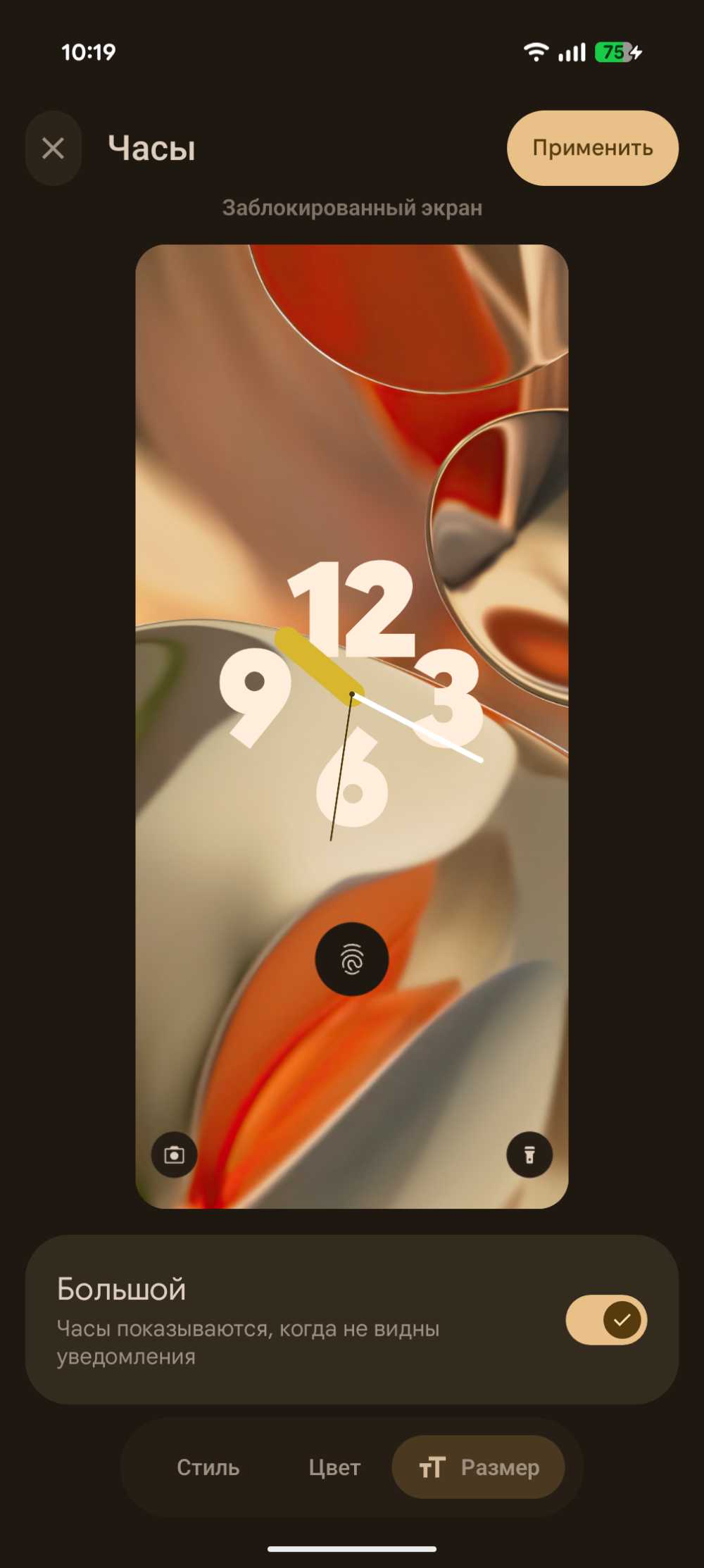 Появилась возможность изменять размер и ширину часов на экране блокировки с помощью нового ползунка. Однако эта функция пока доступна только для стандартных часов с реактивным шрифтом.
