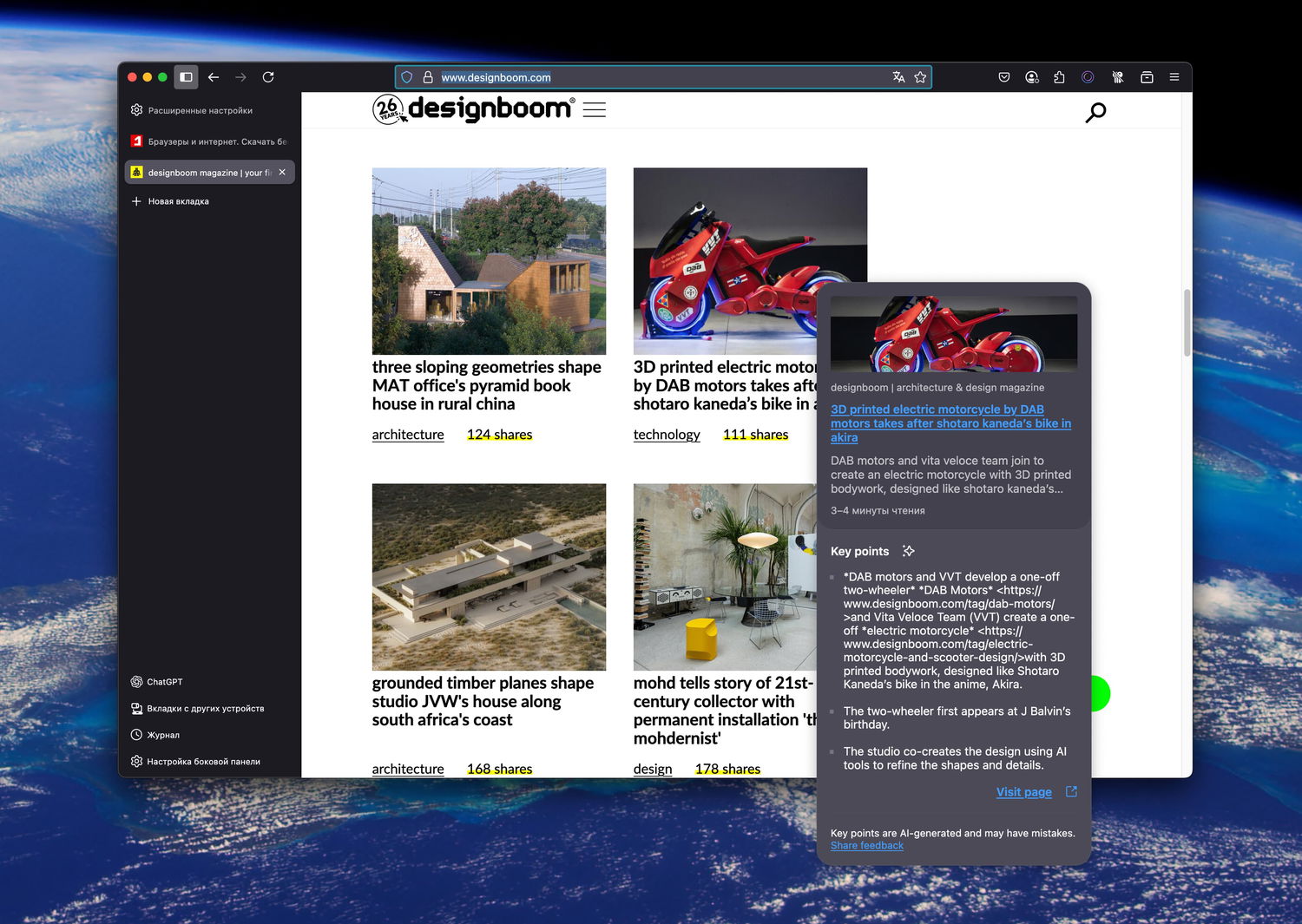 Встроенная функция перевода Firefox теперь также поддерживает внутренние страницы расширений. Они начинаются с moz-extension:// и часто используются для отображения информации или настроек.