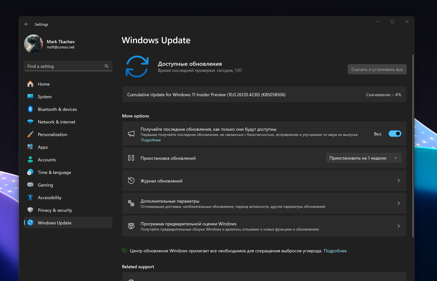 Примечание. Microsoft заблокировала установку обновлений для инсайдеров Windows 11 в России и Беларуси. Для установки обновления KB5058506 (Build 26120.4230) вы можете использовать наши DNS-серверы: Установка инсайдерских сборок Windows 11 с помощью Comss.one DNS.