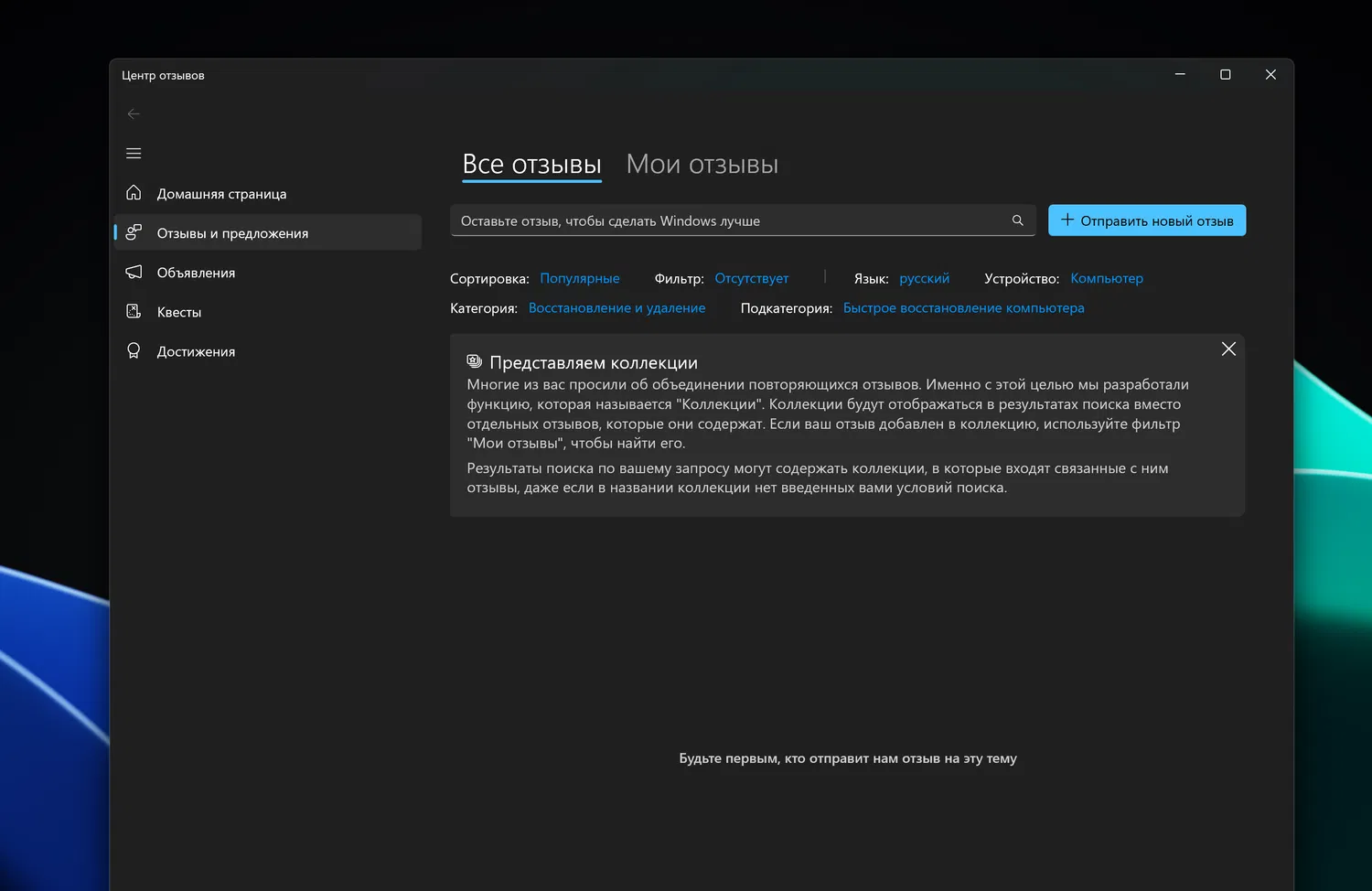 Или просто откройте эту ссылку в Центре отзывов, чтобы сразу перейти к нужной категории.