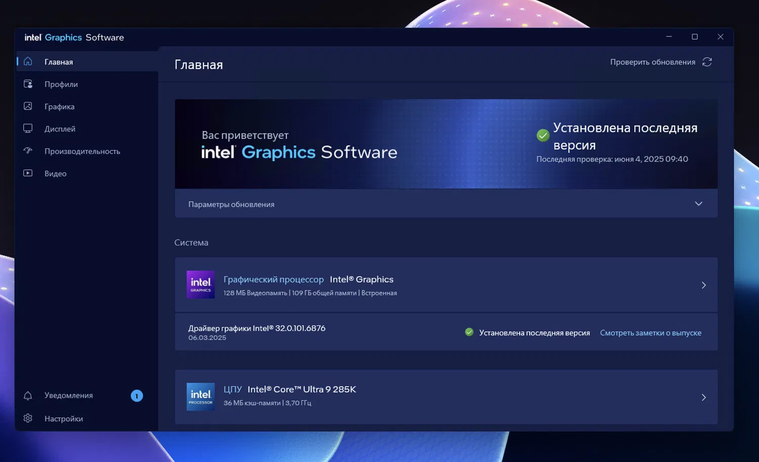 Скачать Intel Arc & Iris Xe Graphics Driver 32.0.101.6876 Non-WHQL