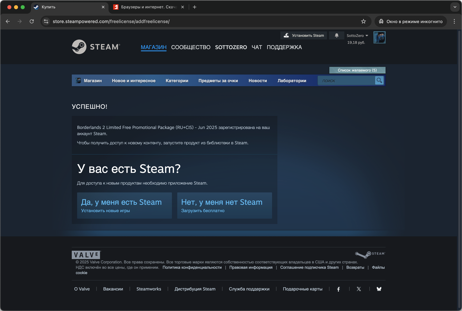 - Укажите свой возраст и на следущей странице нажмите кнопку Добавить в аккаунт для BORDERLANDS 2 LIMITED FREE PROMOTIONAL PACKAGE (RU+CIS) - JUN 2025.