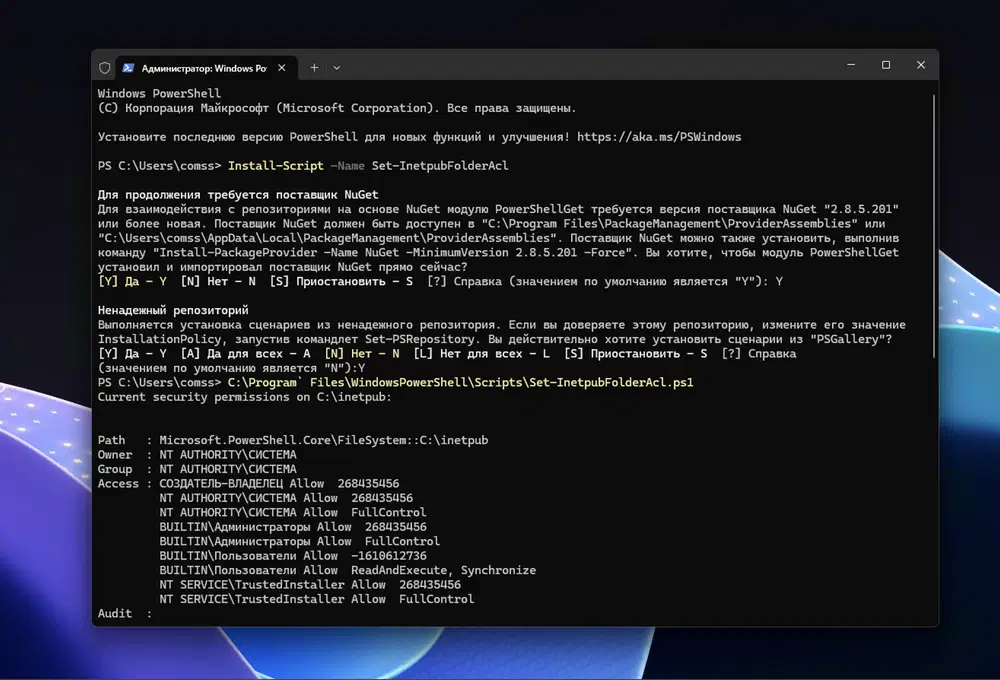 Как поясняет Microsoft, скрипт устанавливает корректные права доступа IIS, предотвращая несанкционированный доступ и потенциальные атаки.