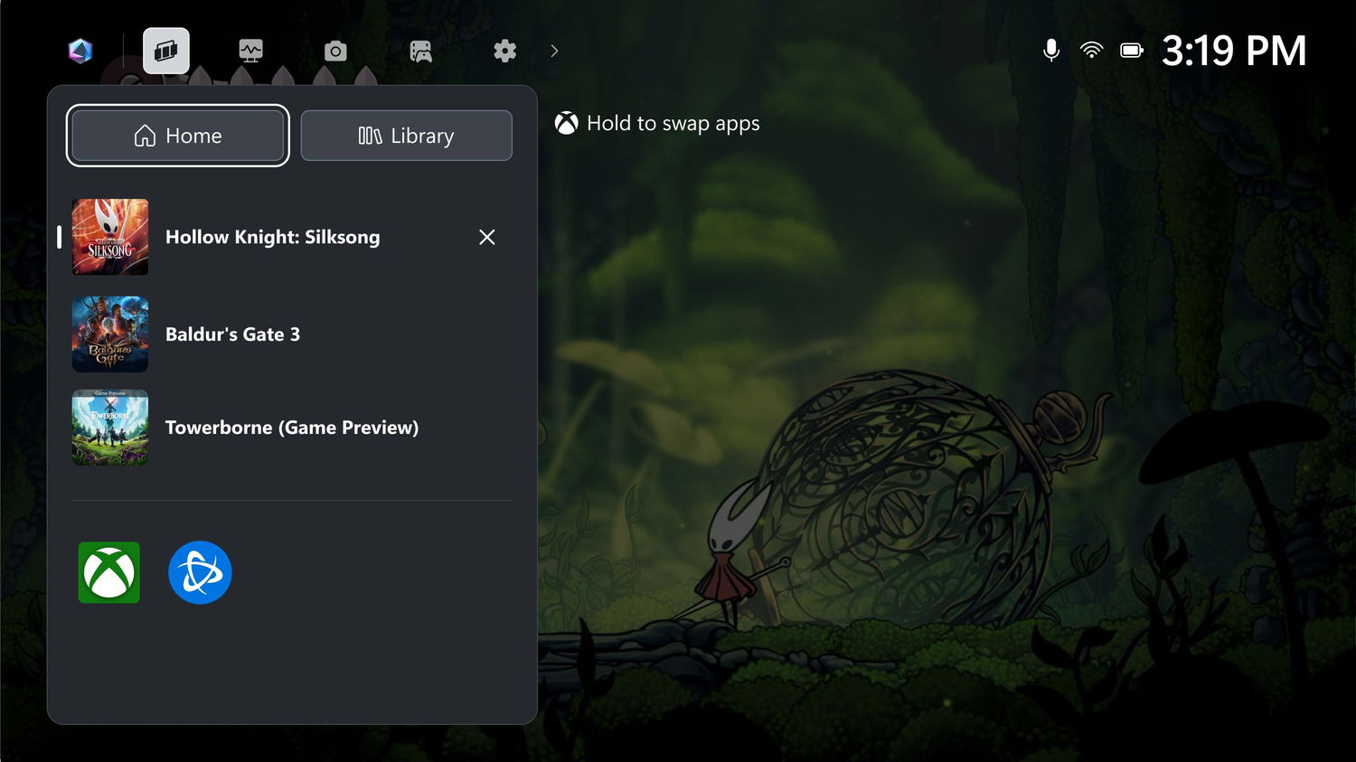 На устройствах Xbox Ally и Xbox Ally X появится обновленный интерфейс переключения между приложениями (Alt+Tab), больше похожий на многозадачность в iOS или Android. Управление осуществляется полностью с геймпада, включая экранную клавиатуру. Это позволяет открывать сторонние приложения — Twitch, YouTube, Discord, WhatsApp и другие — через браузеры Edge или Chrome без необходимости обращаться к рабочему столу или касаться экрана.