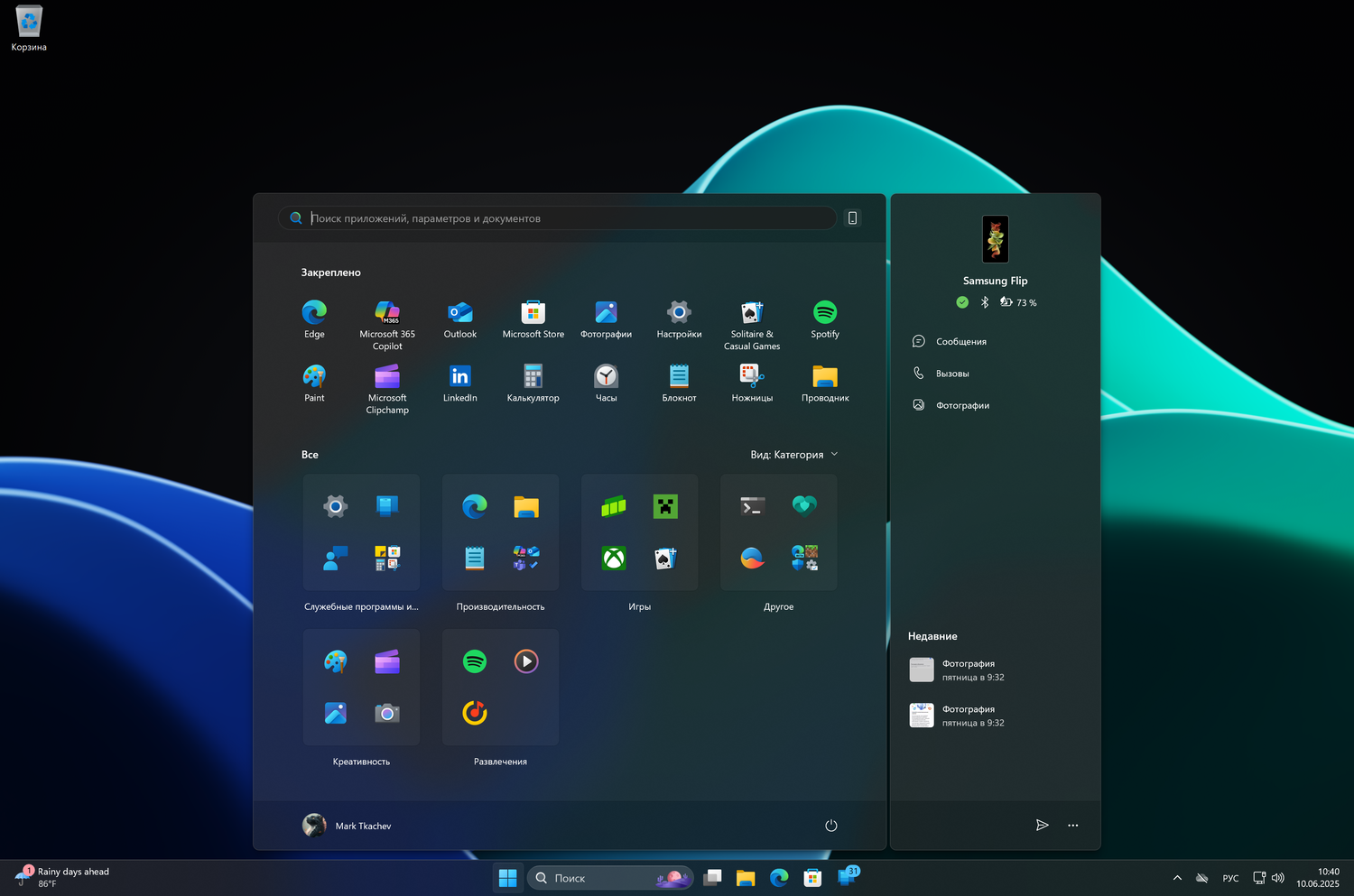 Кроме того, в меню появился новый элемент — кнопка мобильного устройства. Она позволяет свернуть или развернуть интерфейс «Связь с телефоном», который отображается рядом с меню «Пуск». Также добавлена настройка виджетов экрана блокировки: теперь можно выбирать, какие именно отображаются, и менять их порядок.