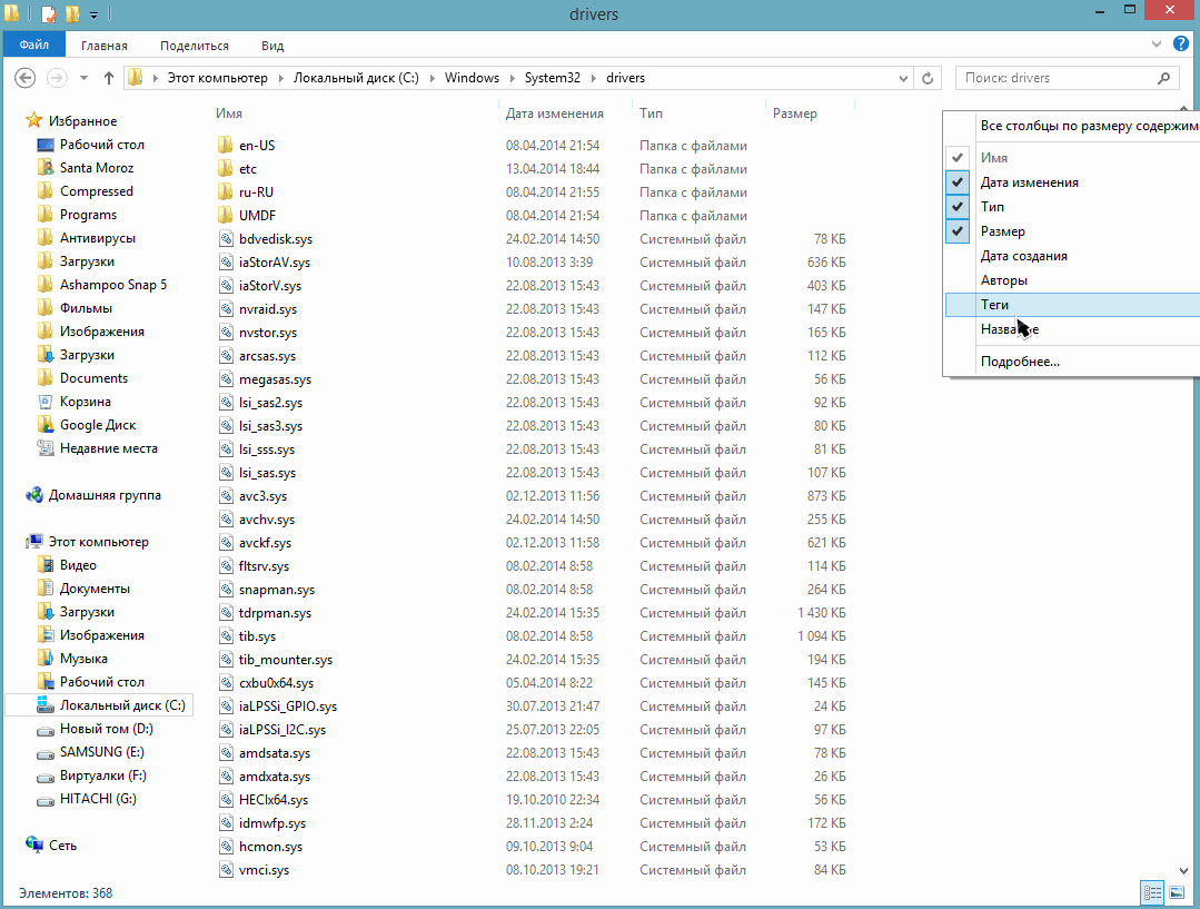 C:\Windows\System32\Drivers - здесь выставьте так (скриншот 1)