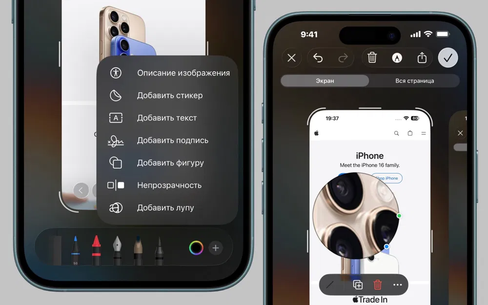 - Инструмент «Лупа» в редакторе. В приложении «Фото» и при редактировании скриншотов в iOS 26 вернулась функция «Лупа» – при редактировании фото можно добавить увеличительное стекло, чтобы акцентировать внимание на любом месте изображения.
