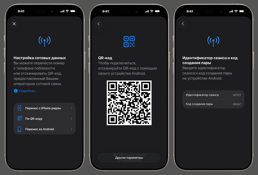 - Перенос eSIM с Android. При добавлении eSIM в iOS 26 появилась опция «Перенести с Android». Она показывает QR-код, который можно отсканировать Android-устройством для переноса номера.