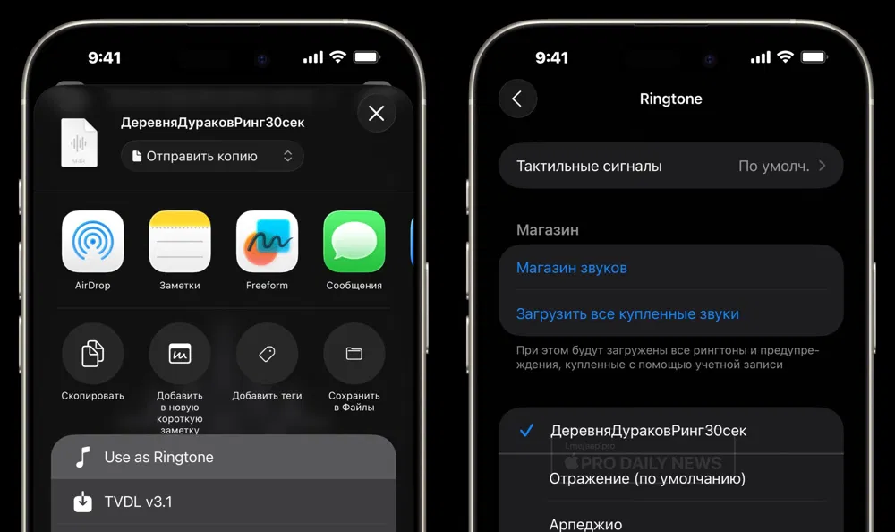 - Установка рингтонов из «Файлы». В iOS 26 можно установить рингтон прямо из приложения «Файлы». Нужно подготовить аудиофайл (до 30 сек, формат .m4r) и через меню «Поделиться» выбрать «Использовать как рингтон». Файл автоматически копируется в «Мои рингтоны».