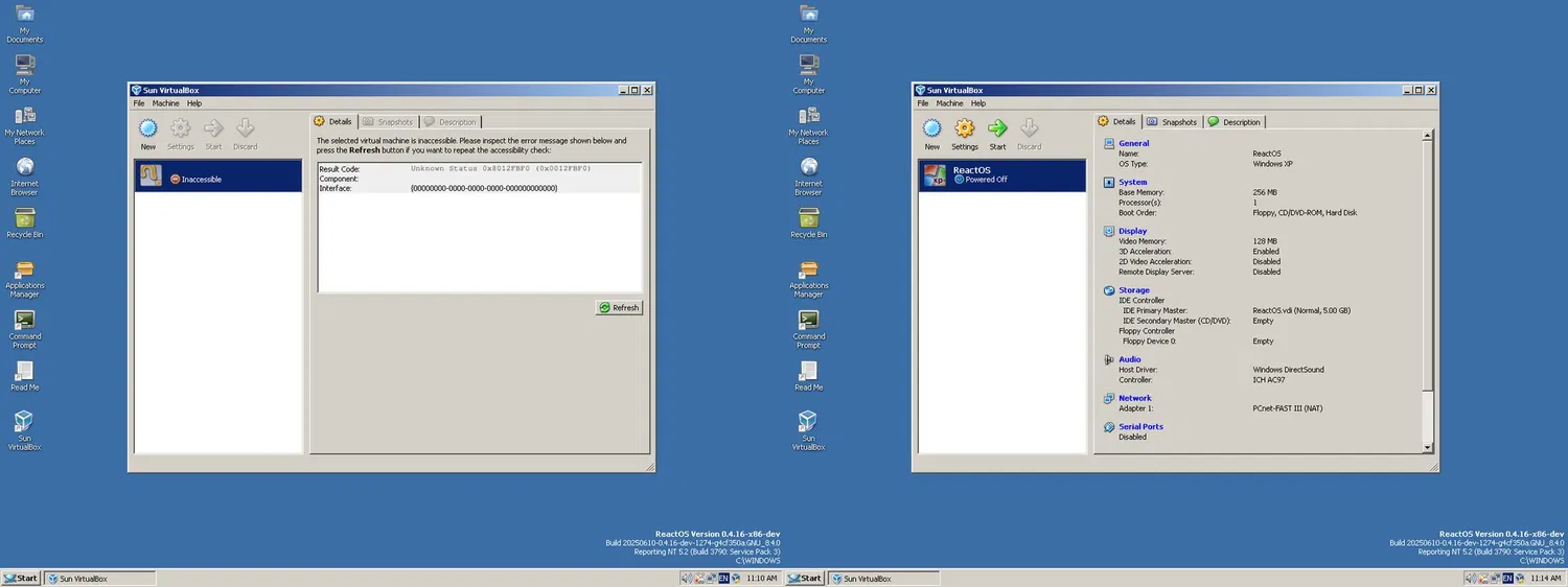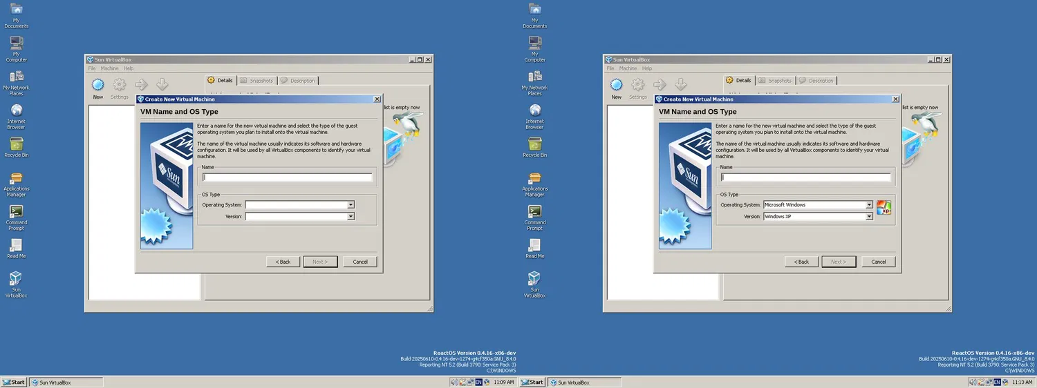 Кроме поддержки полноэкранного режима, в ReactOS была импортирована из проекта Wine важная правка для библиотеки oleaut32.dll, которая устраняет ошибки с выпадающими списками (comboBox) в Oracle VirtualBox. Теперь пользователи могут создавать и сохранять настройки.