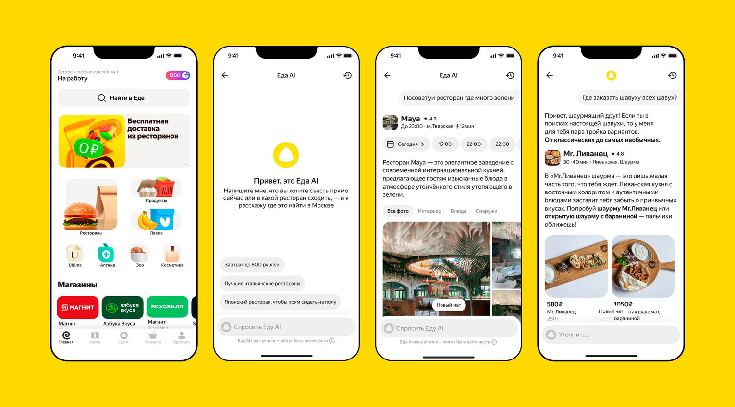Компания Яндекс активно внедряет искусственный интеллект в экосистему своих сервисов. Весной 2025 года аналогичные AI-ассистенты, также построенные на YandexGPT 5 Pro, появились в Яндекс Маркете и Яндекс Лавке. Теперь нейросети помогают и в сфере ресторанов и доставки еды.