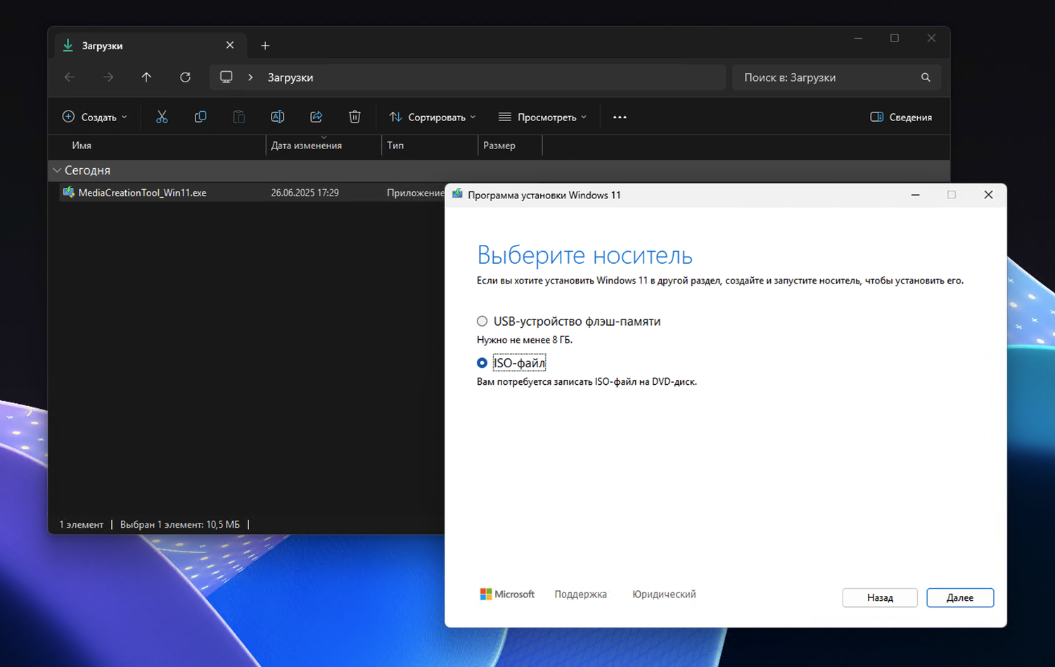 Media Creation Tool — это официальный инструмент от Microsoft, позволяющий создавать установочные носители (USB-накопитель или ISO-файл) с актуальной версией Windows 11. Утилита подходит как для чистой установки, так и для обновления с предыдущих версий.