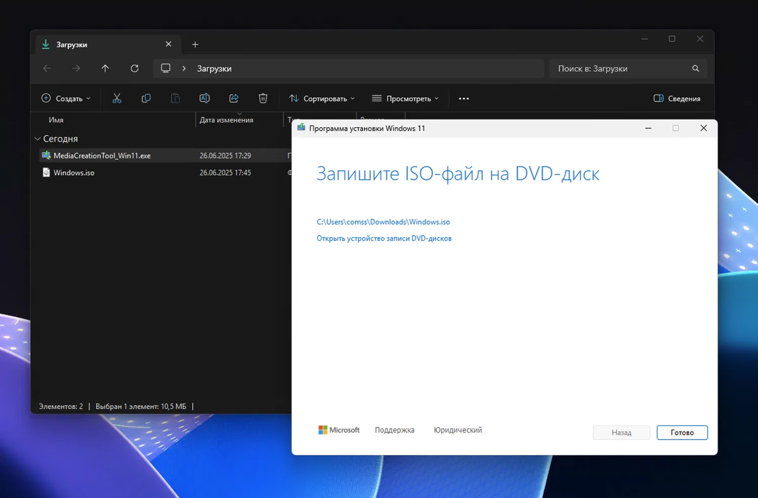 Созданный установочный носитель можно использовать для чистой установки Windows 11 24H2, обновления с Windows 10 или предыдущих сборок Windows 11, а также для восстановления системы.