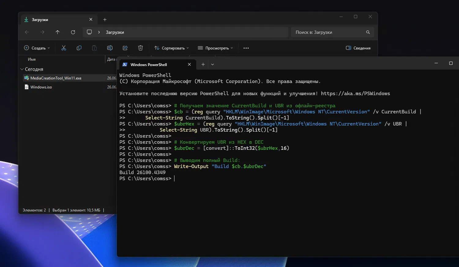 - После завершения загрузки вы получите образ с Windows 11 24H2 (26100.4349).