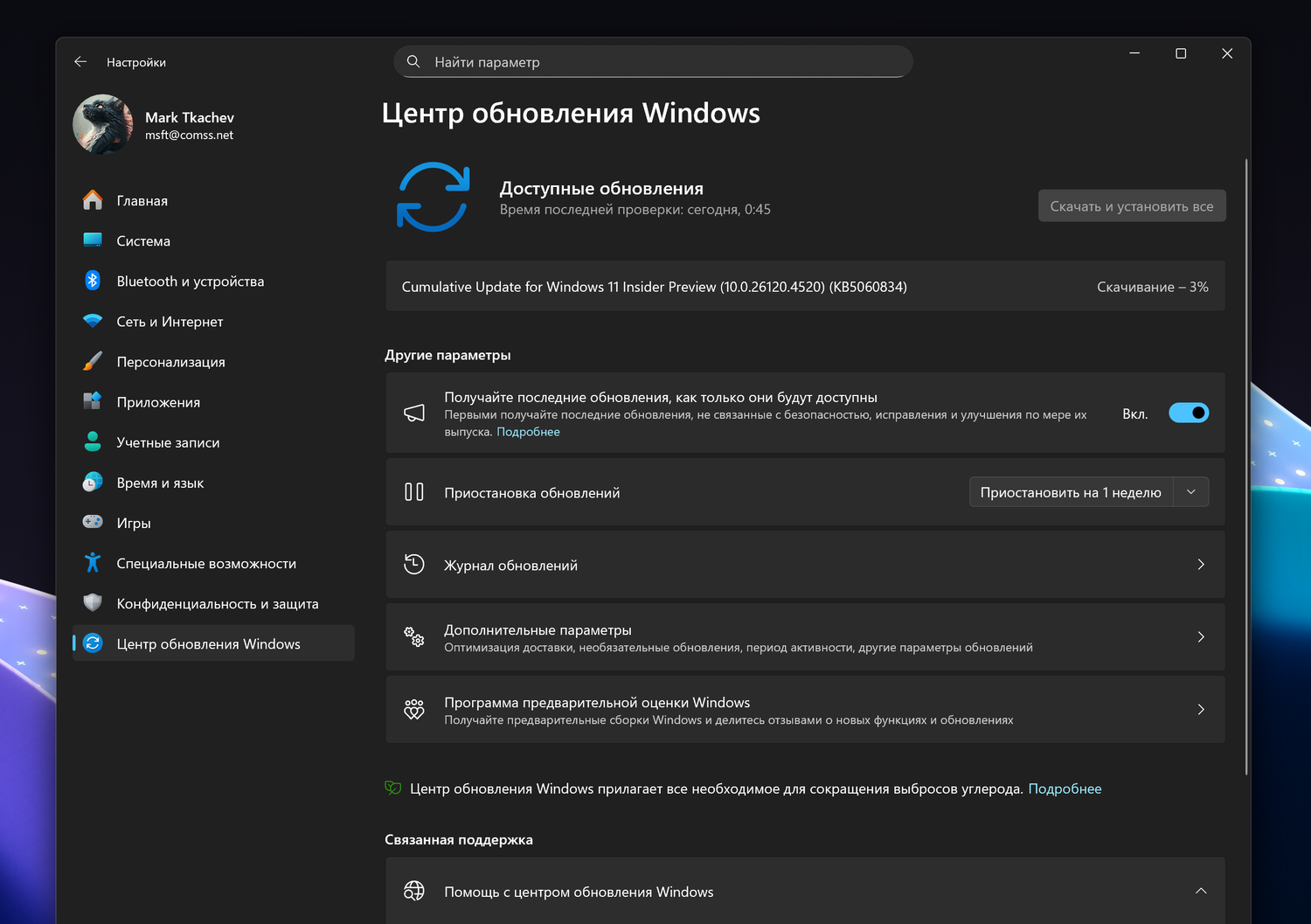 Примечание. Microsoft заблокировала установку обновлений для инсайдеров Windows 11 в России и Беларуси. Для установки обновления KB5060834 (Build 26120.4520) вы можете использовать наши DNS-серверы: Установка инсайдерских сборок Windows 11 с помощью Comss.one DNS.