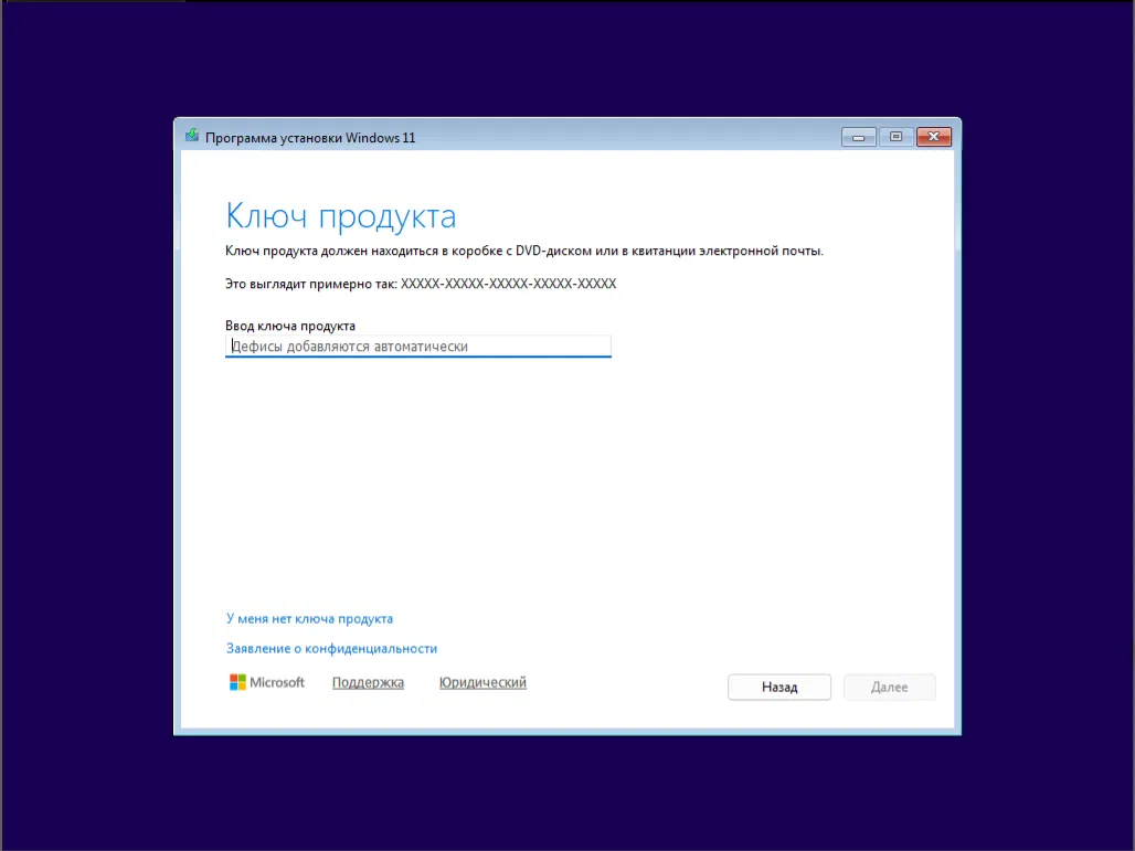 - Введите ключ продукта (если он у вас есть) или выберите опцию для его ввода позже.