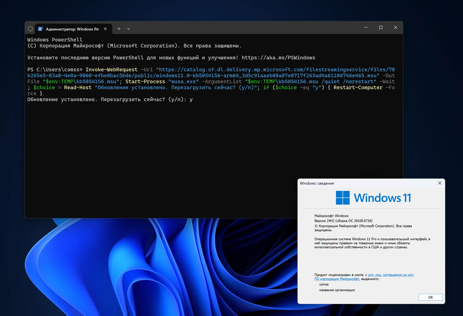 В нашем случае мы установили активационный пакет KB5054156 в сборке Windows 11 (24H2) (Build 26100.5074), которая доступна с обновлением KB5064081.