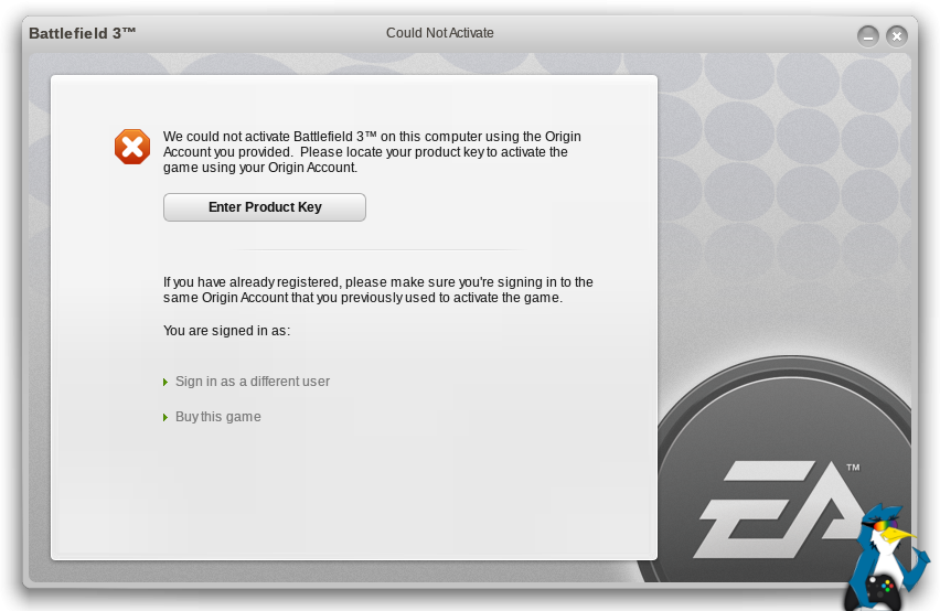 Иногда EA не может проверить, что вы владеете игрой, и появляется такое сообщение: