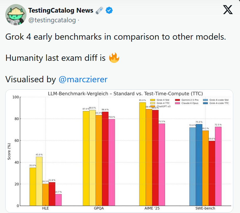 Утечка бенчмарков Grok 4: Рекордные показатели